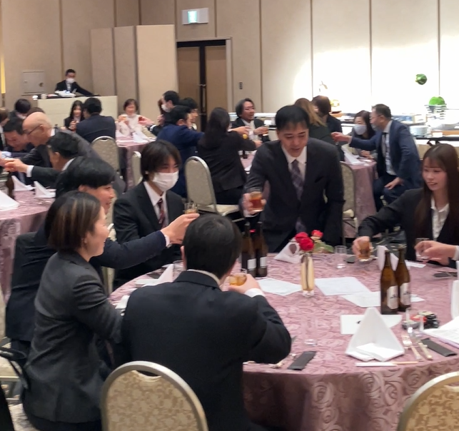新入社員紹介や昨年度に活躍した社員への表彰に加え、余興として「テーブル対抗 ミニゲーム大会」を行いました。